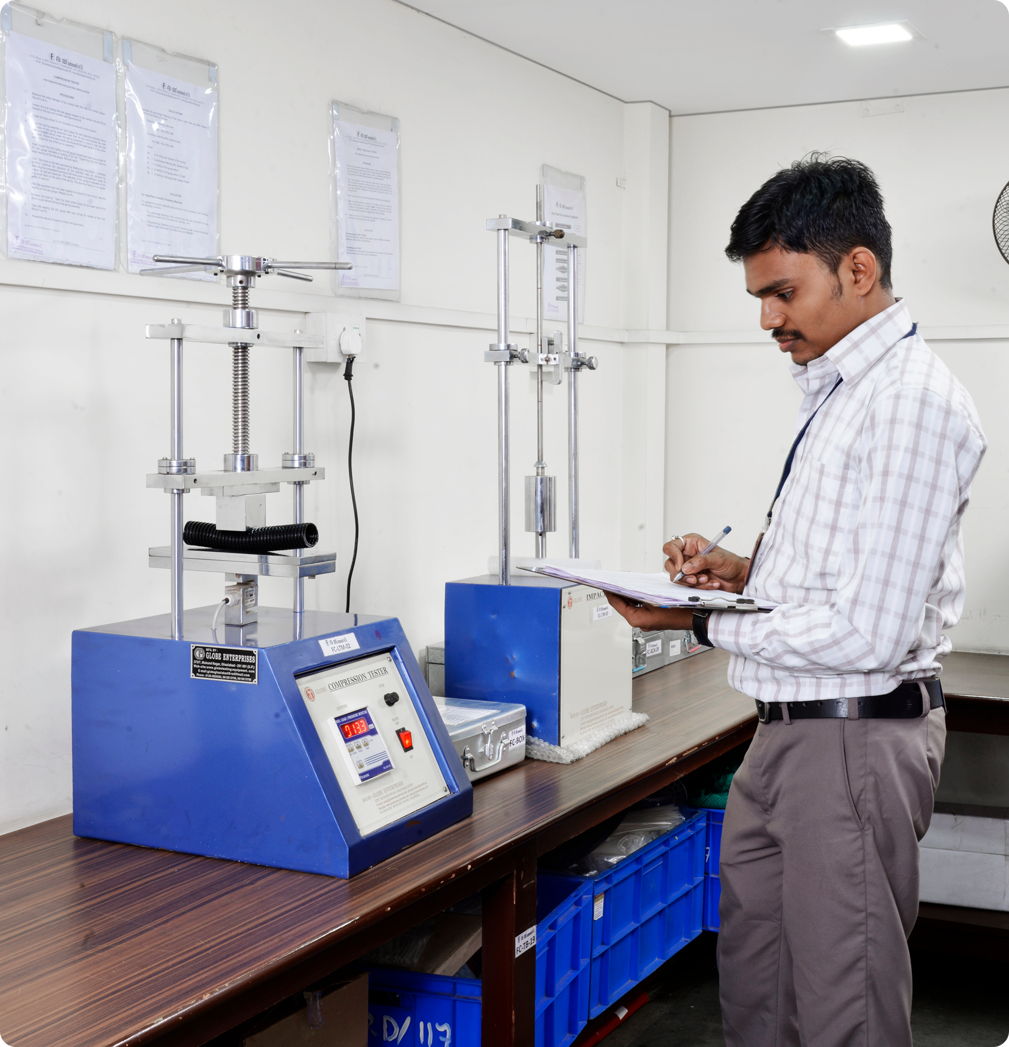 Our testing laboratory is fully equipped with various types of testing equipment’s for fire retardant testing, tensile testing, hammer drop test, hot & cold chambers, IP testing equipment’s current injection test, temperature rise test and many more test as required by IEC, BSEN and IS standards. We conduct various tests on our products for endurance testing, heat ageing etc.